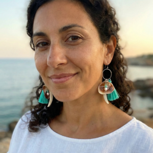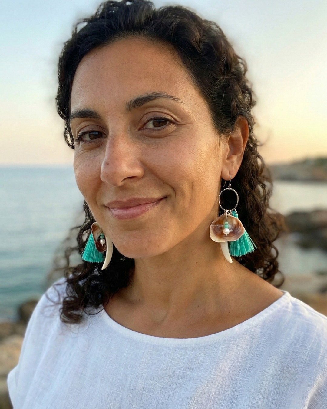Pendientes largos artesanales creados con materiales recolectados de las playas del Garraf.