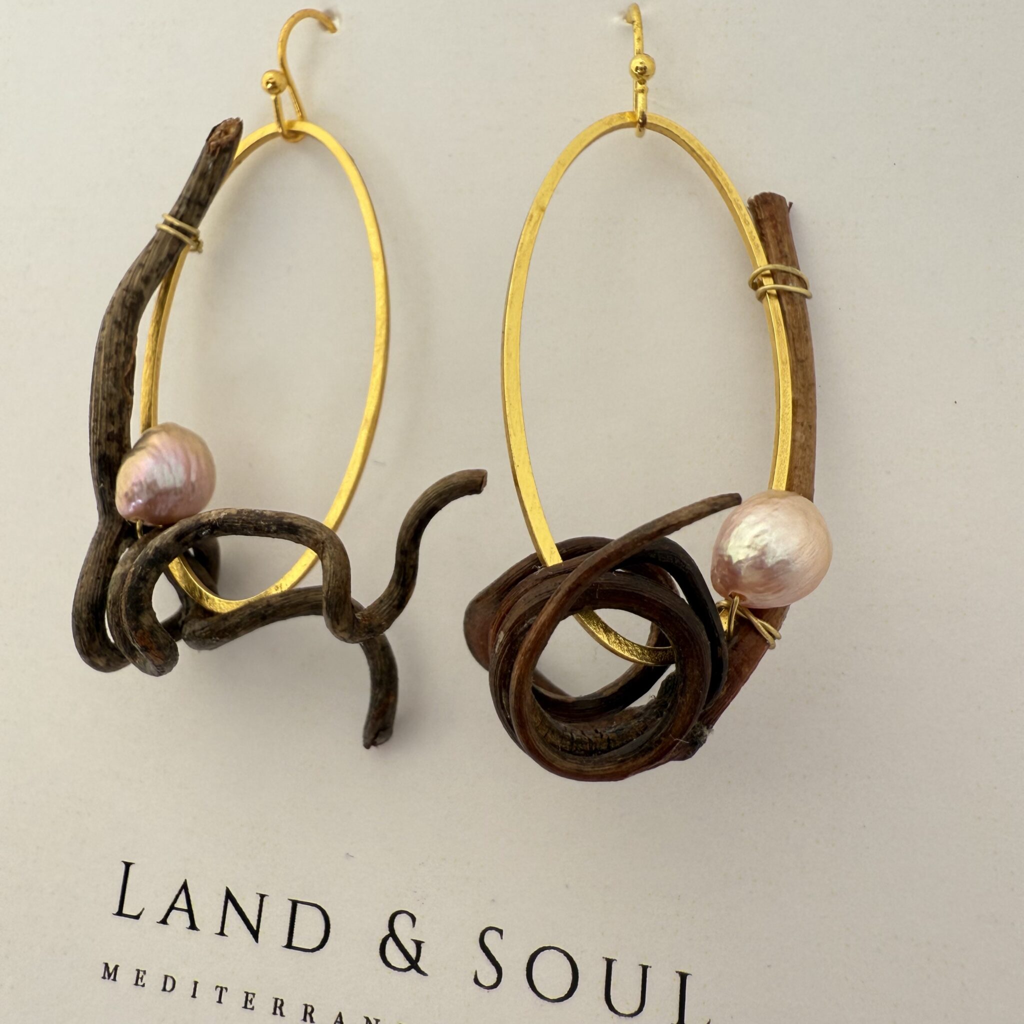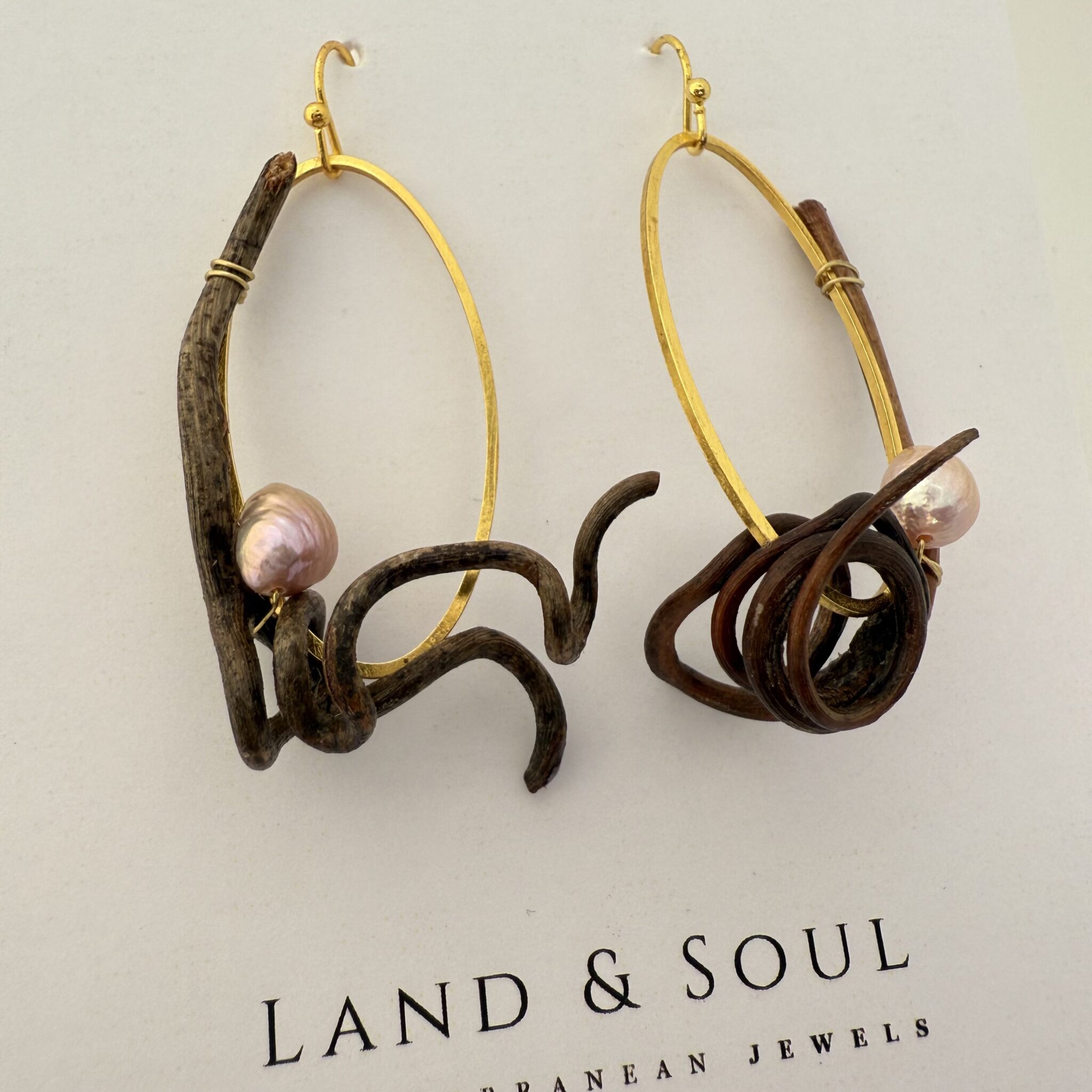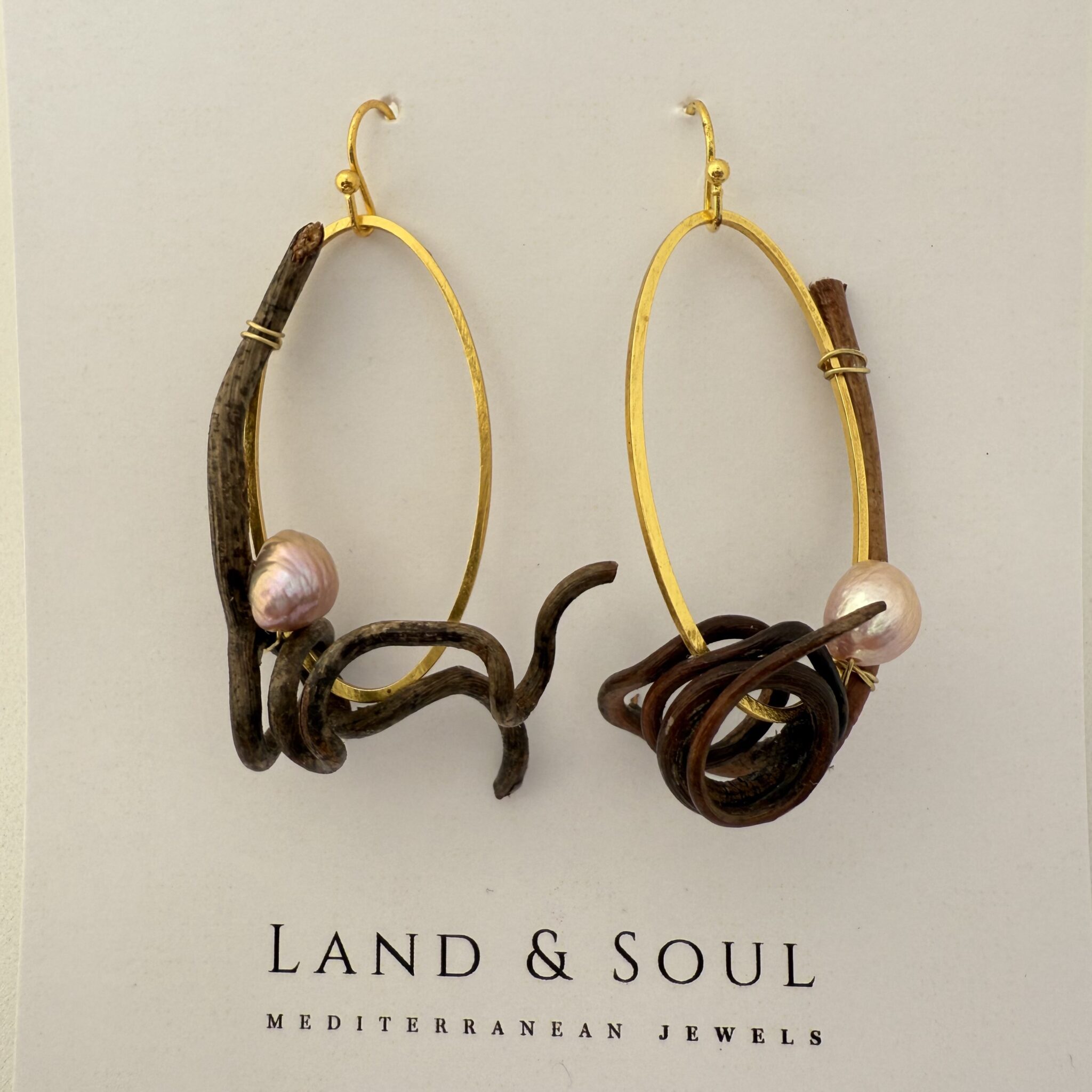 Pendientes creados con zarcillos de vid.